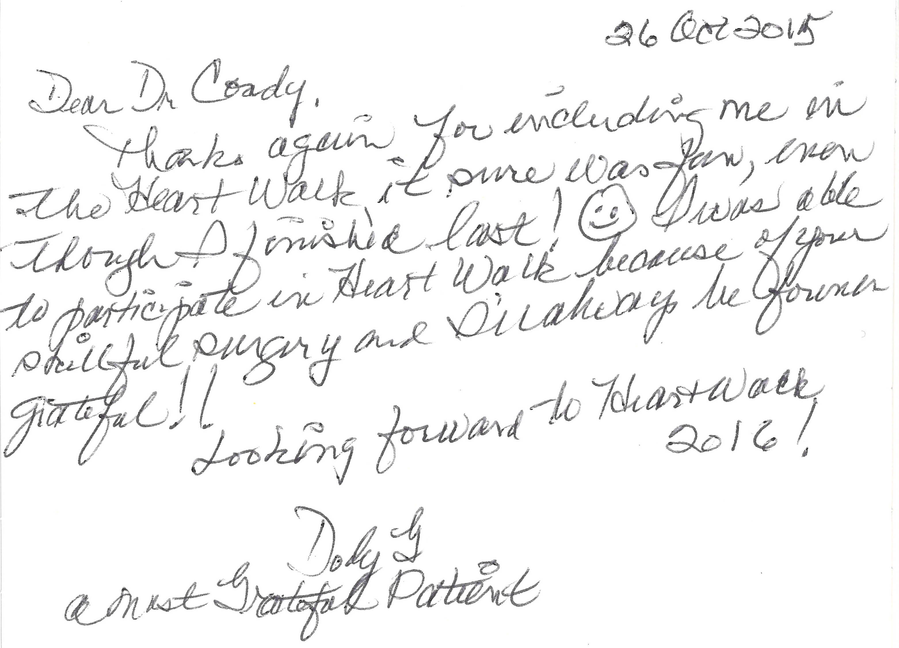 I was able to participate in the Heart Walk because of your skillful surgery and I'll always be forever grateful!!